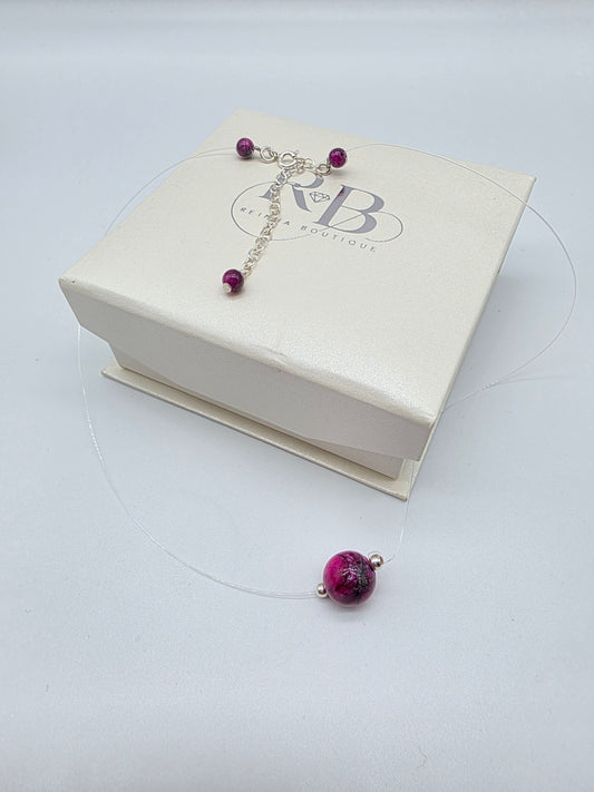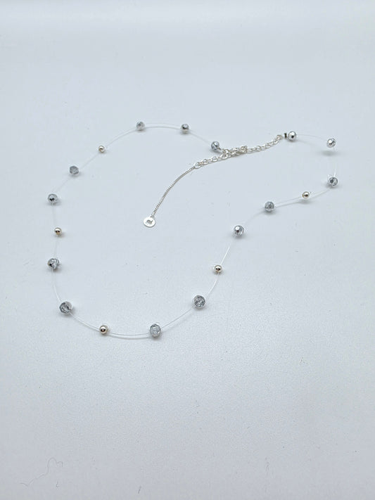 Halsband i silver 925 med rosa kristaller & silverkulor