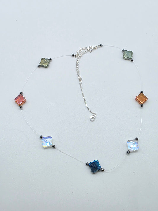 Halsband i silver 925 med naturliga stenar och blå kristaller