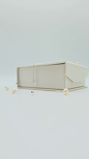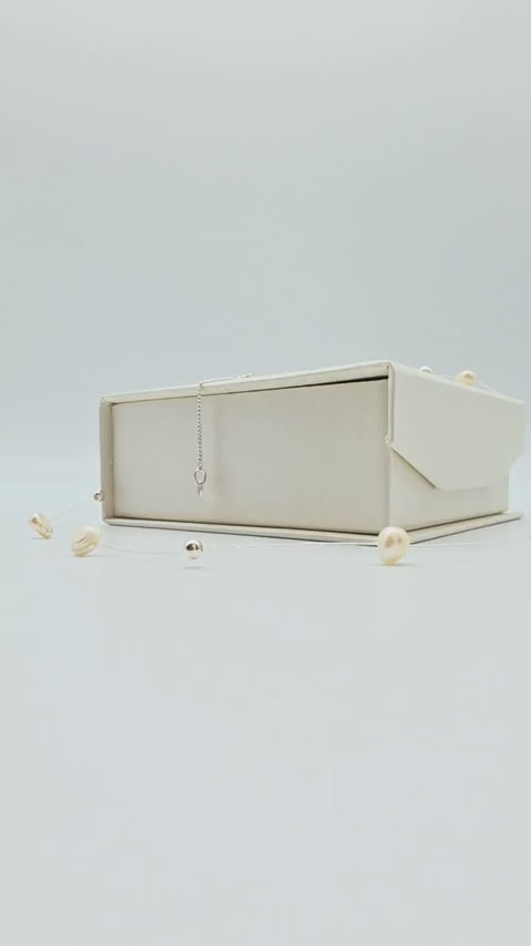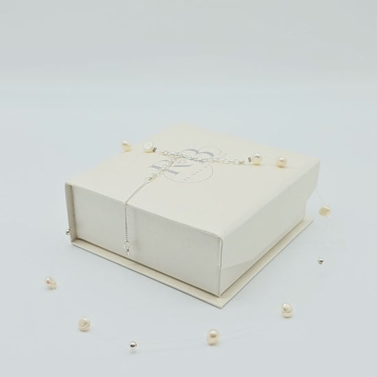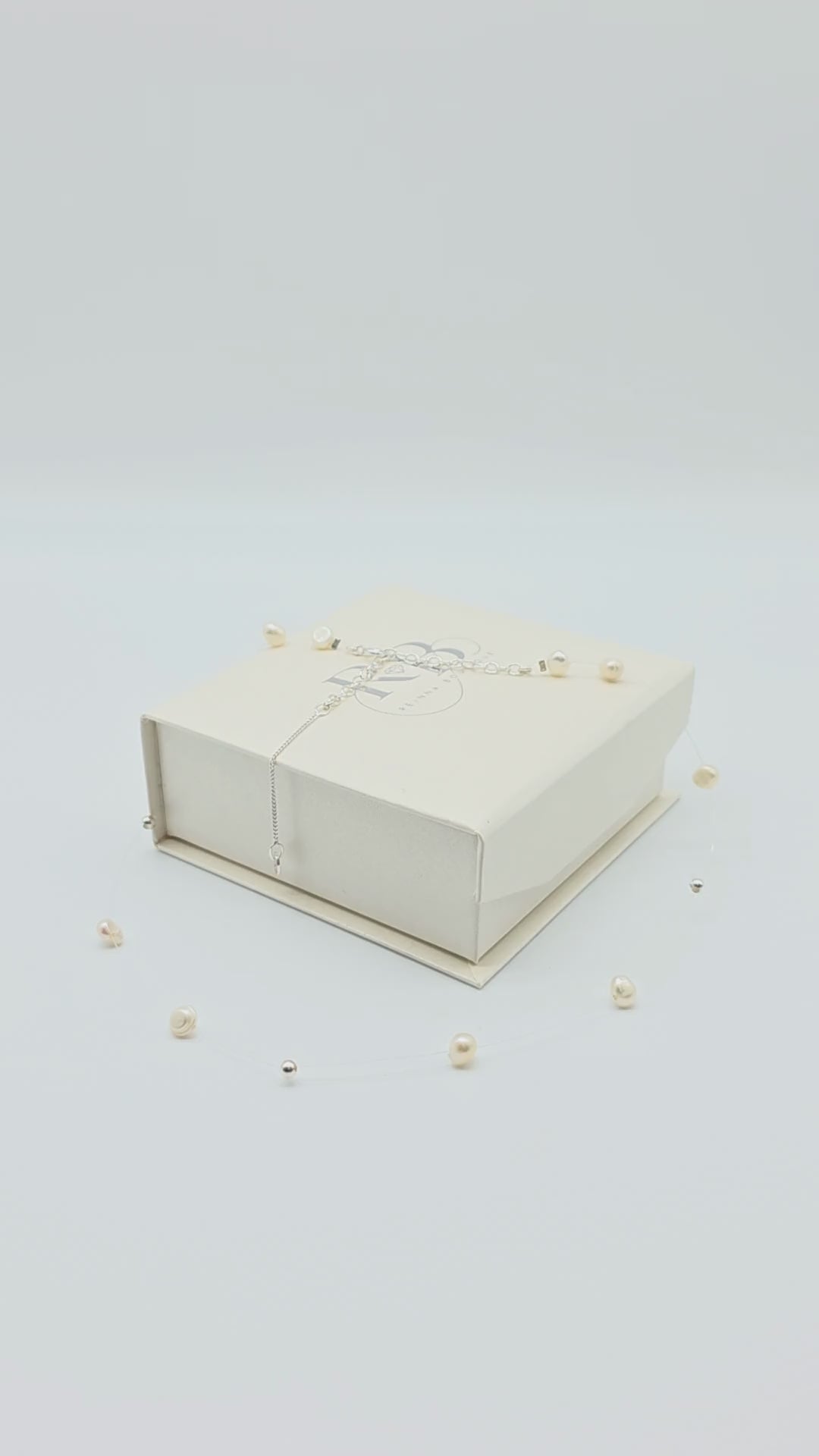 Detta eleganta halsband har en modern floating design där sötvattenspärlor kombineras med silverdetaljer för en tidlös och sofistikerad look.
