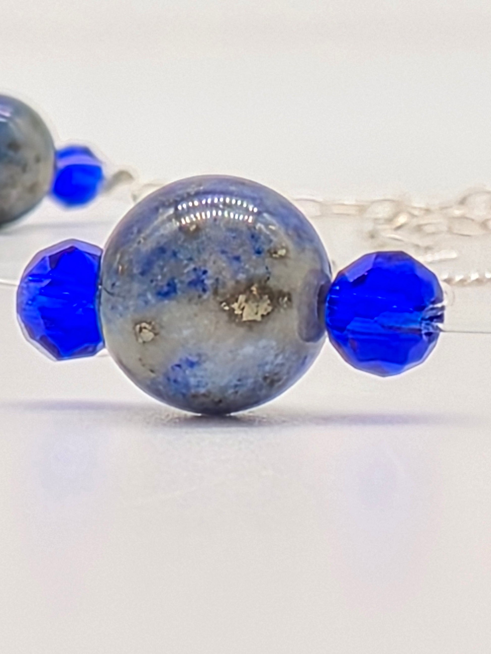 Halsband i silver 925 med naturliga stenar och blå kristaller