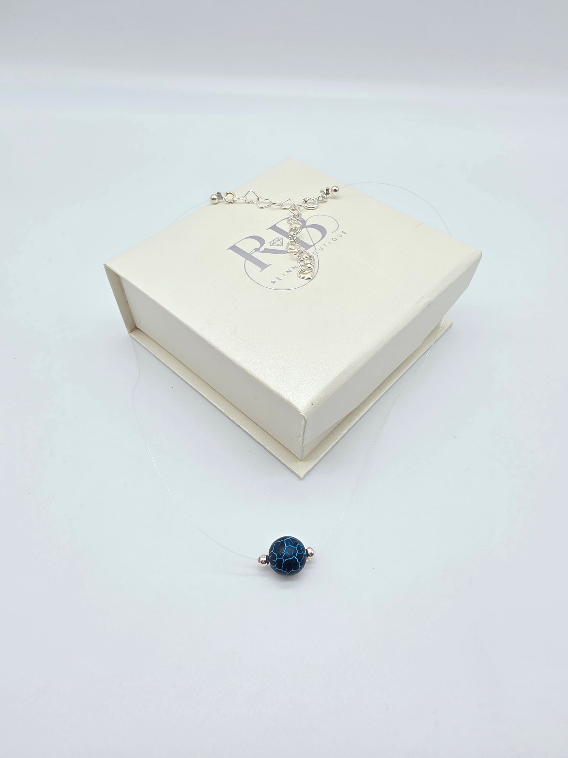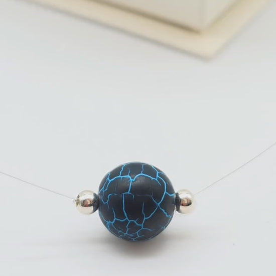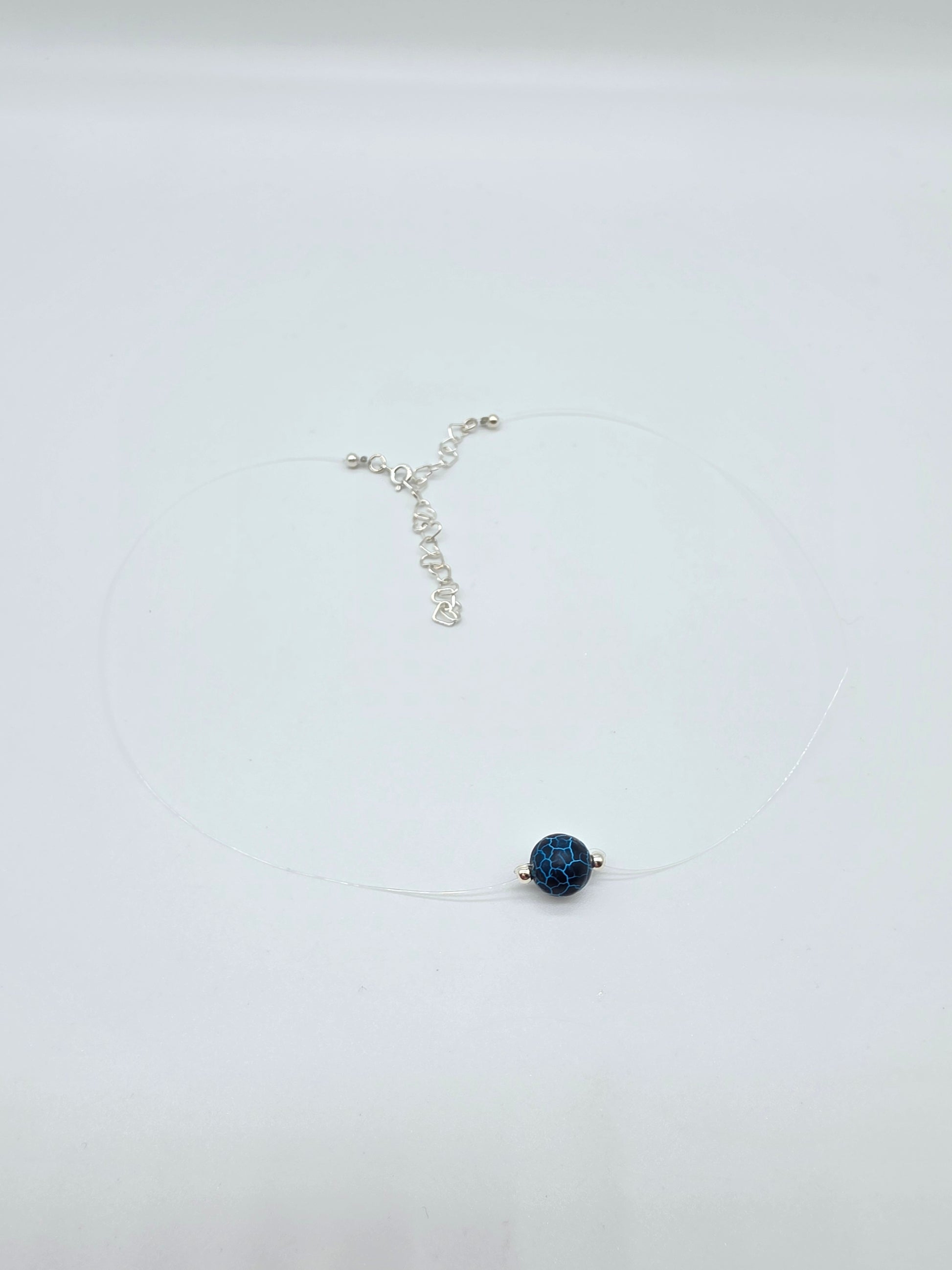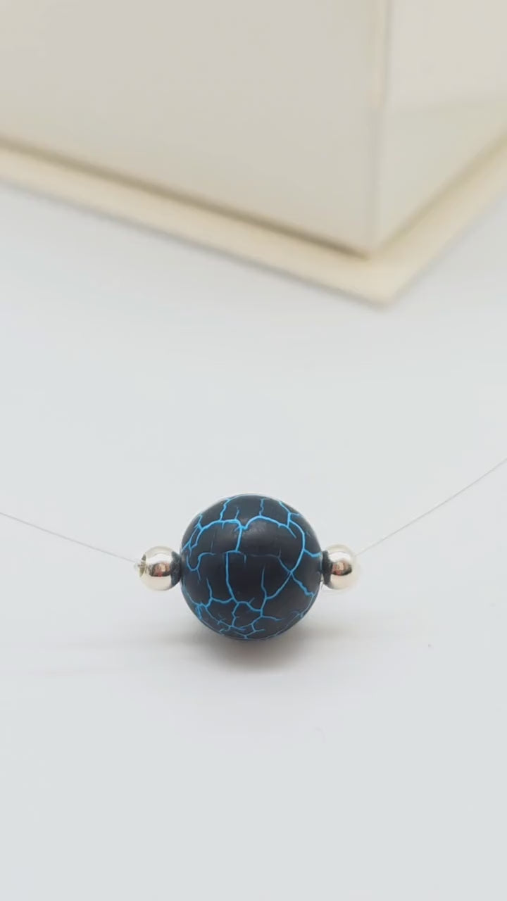 Detta handgjorda halsband lyfter fram en rund natursten i djup svartblå färg med unika spräckliga blå ådringar, vackert inramad av två silverkulor i silver 925 ✨