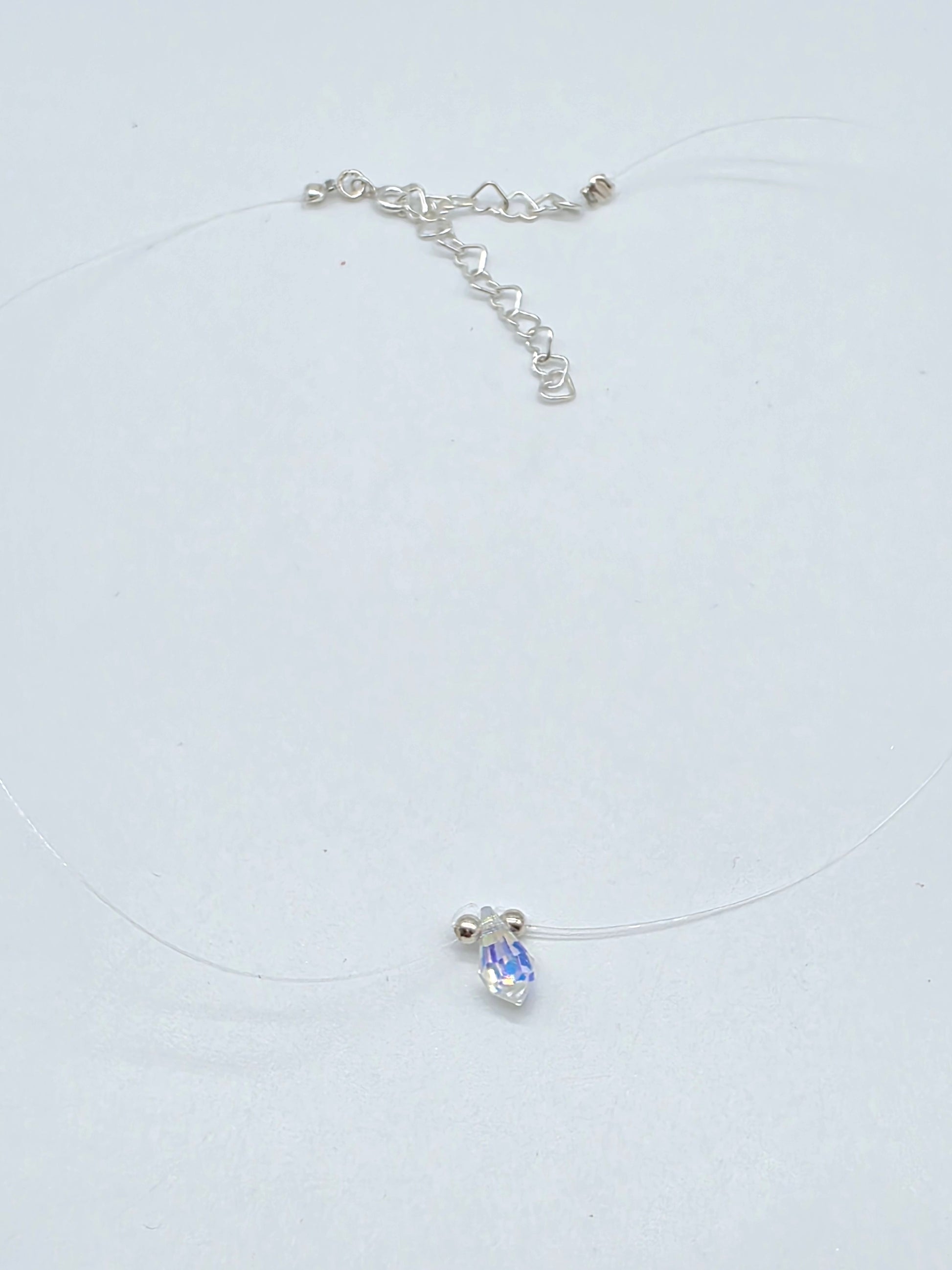 Kristallen fångar ljuset på ett vackert sätt och skiftar lätt i färg, vilket ger halsbandet en sofistikerad och romantisk känsla.