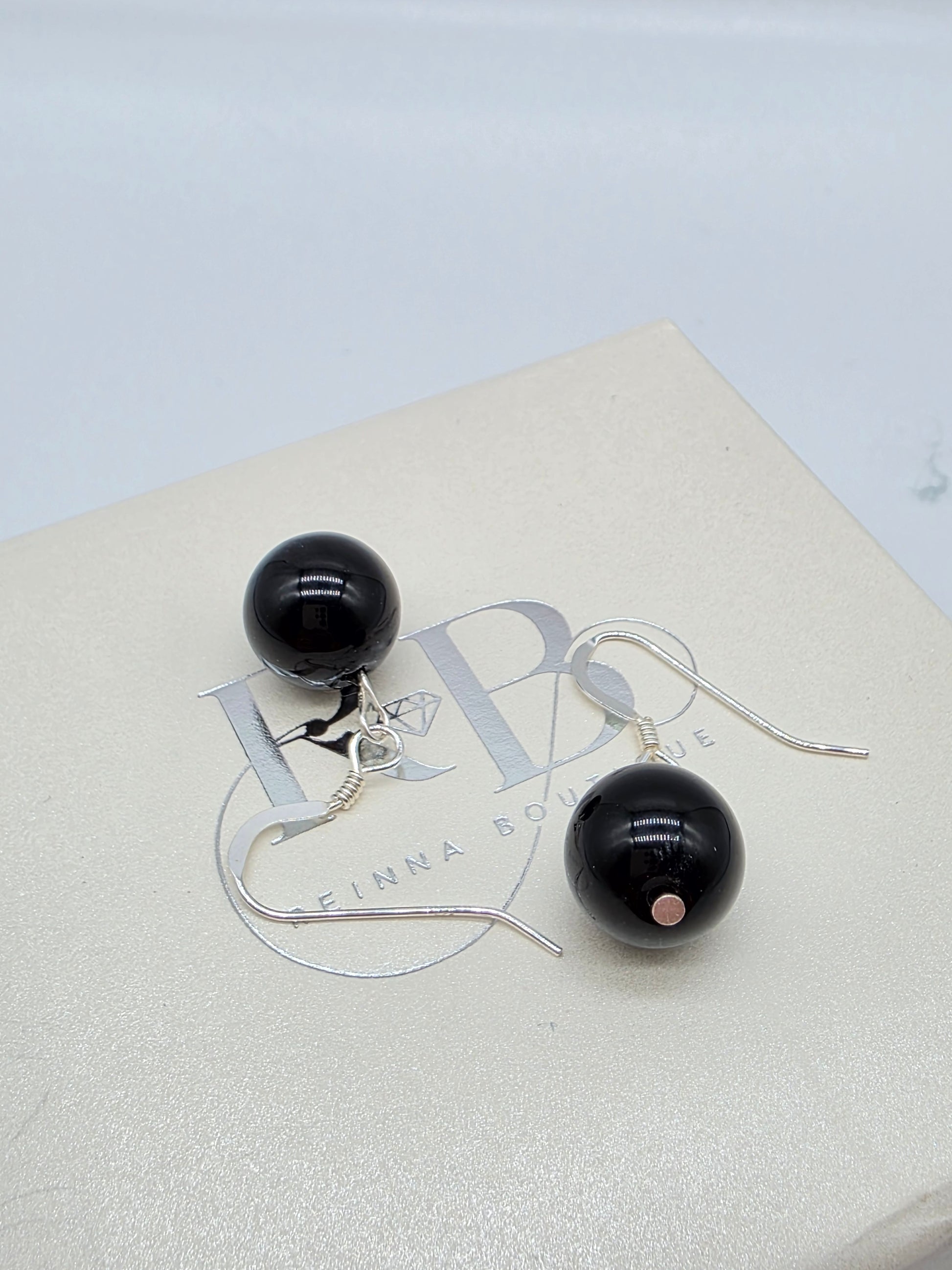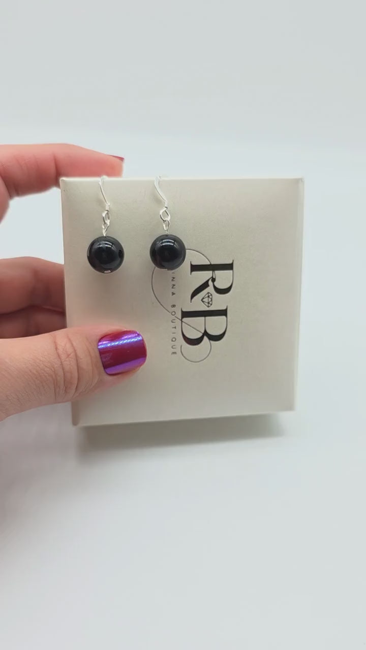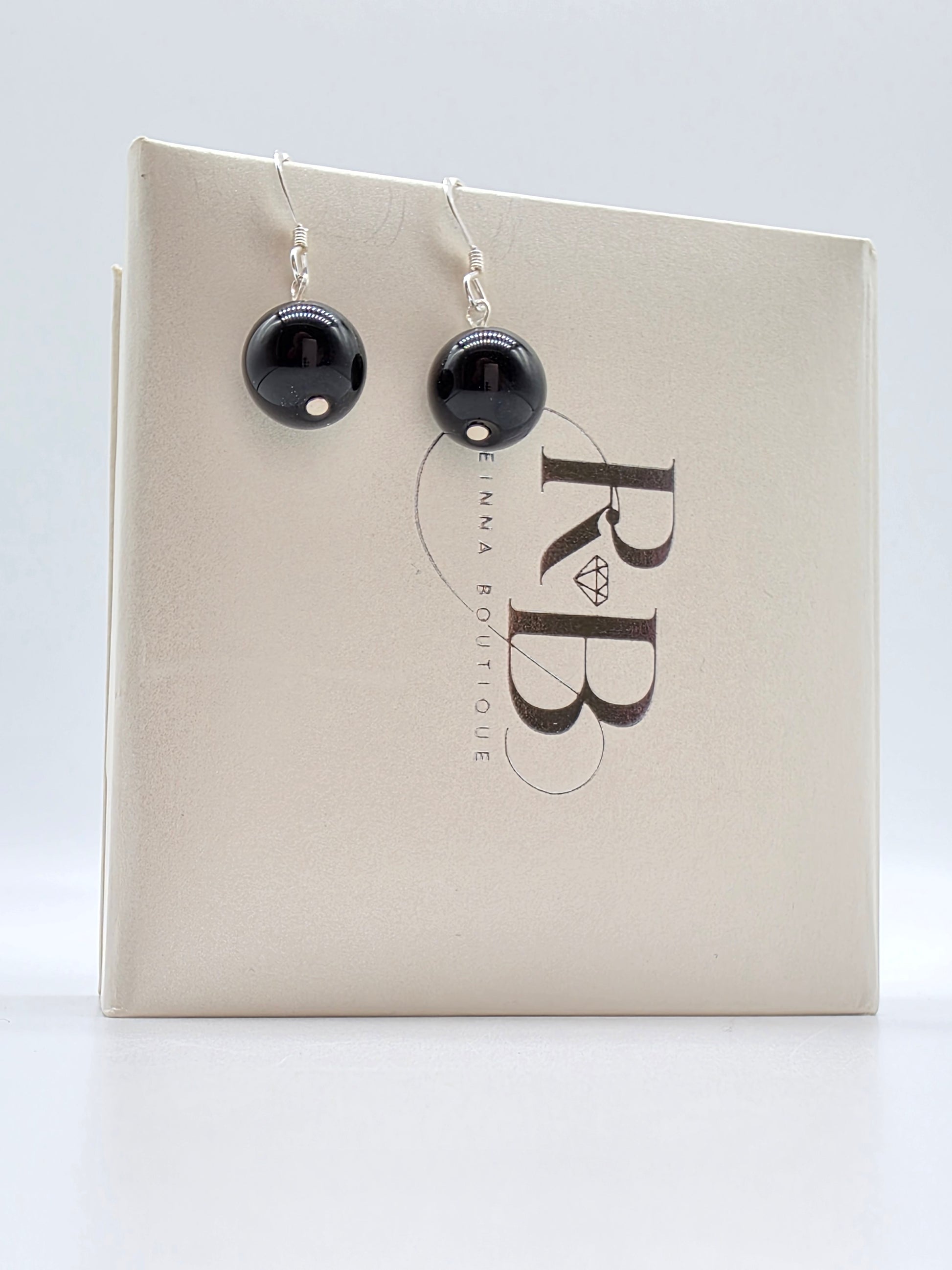 Dessa handgjorda örhängen har en klassisk och elegant design med runda svarta naturstenar (10 mm) som framhävs av detaljer i silver 925. Den stilrena formen gör dem perfekta för både vardag och fest – tidlösa och lätta att matcha med olika outfits.