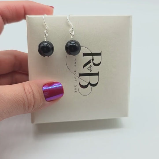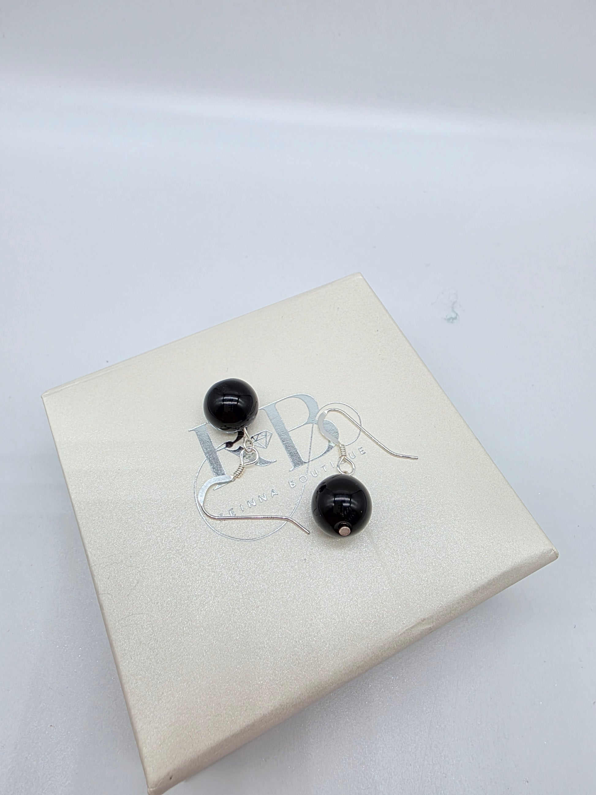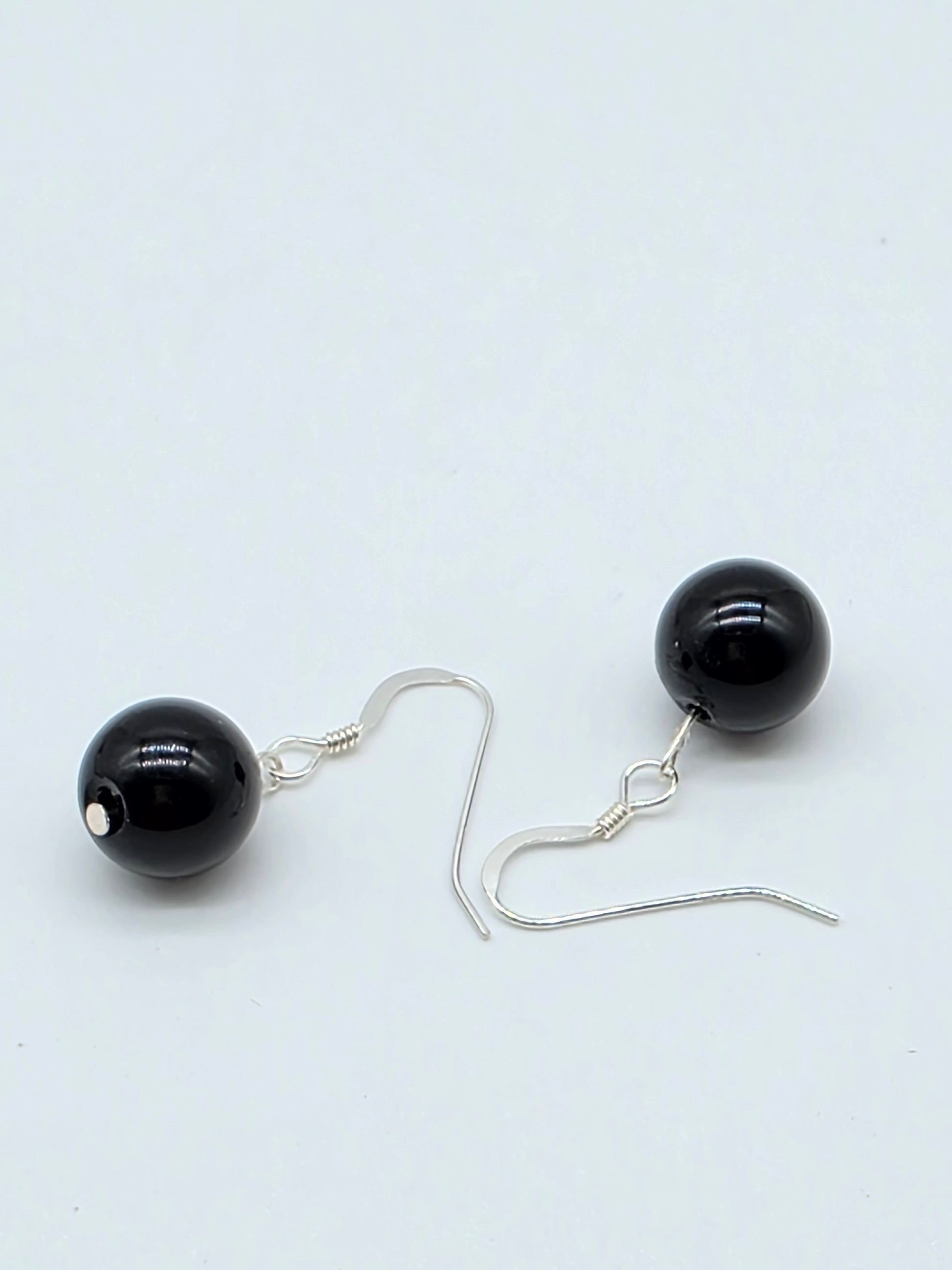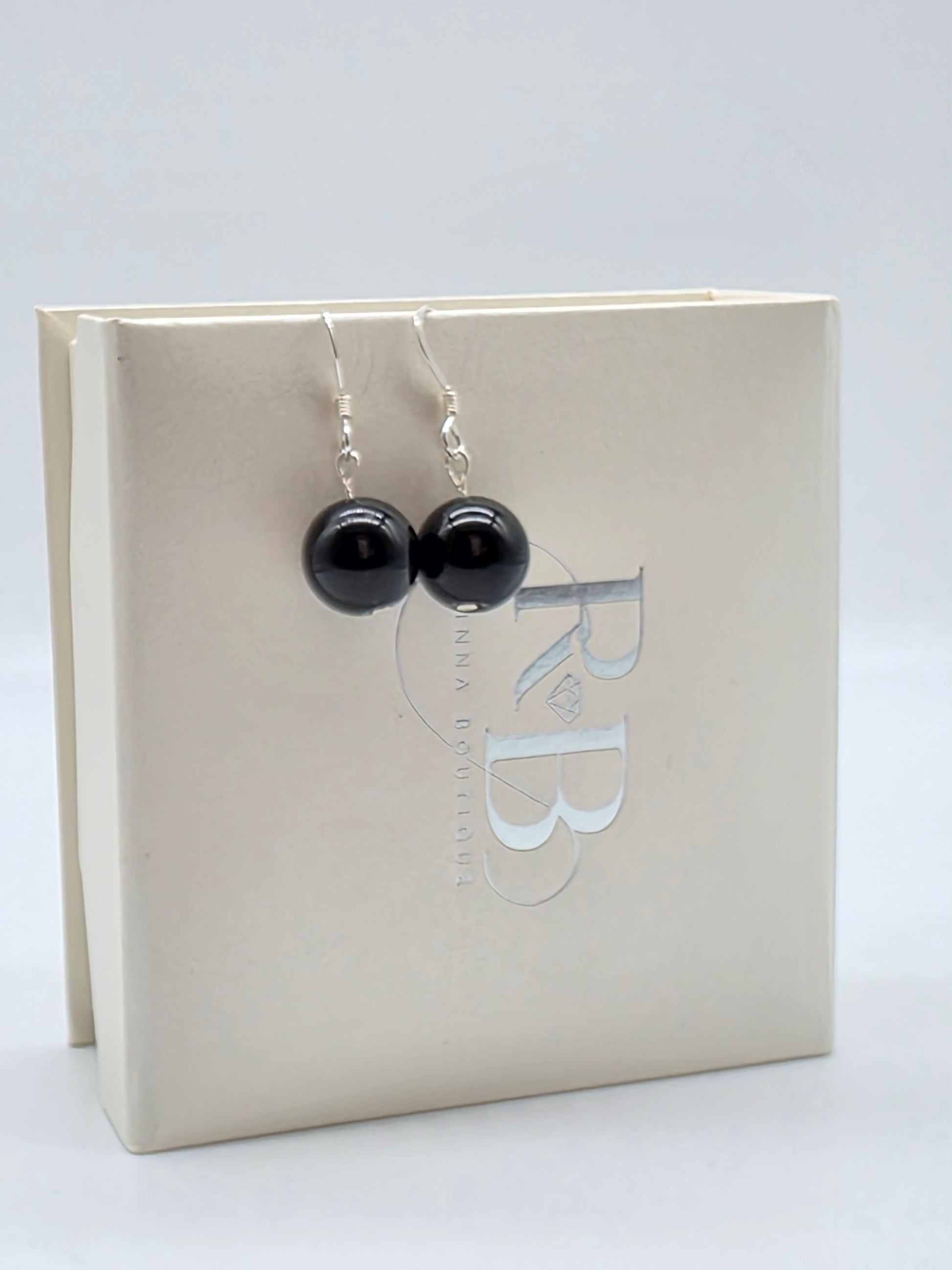 Dessa handgjorda örhängen har en klassisk och elegant design med runda svarta naturstenar (10 mm) som framhävs av detaljer i silver 925. Den stilrena formen gör dem perfekta för både vardag och fest – tidlösa och lätta att matcha med olika outfits.