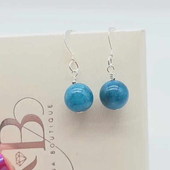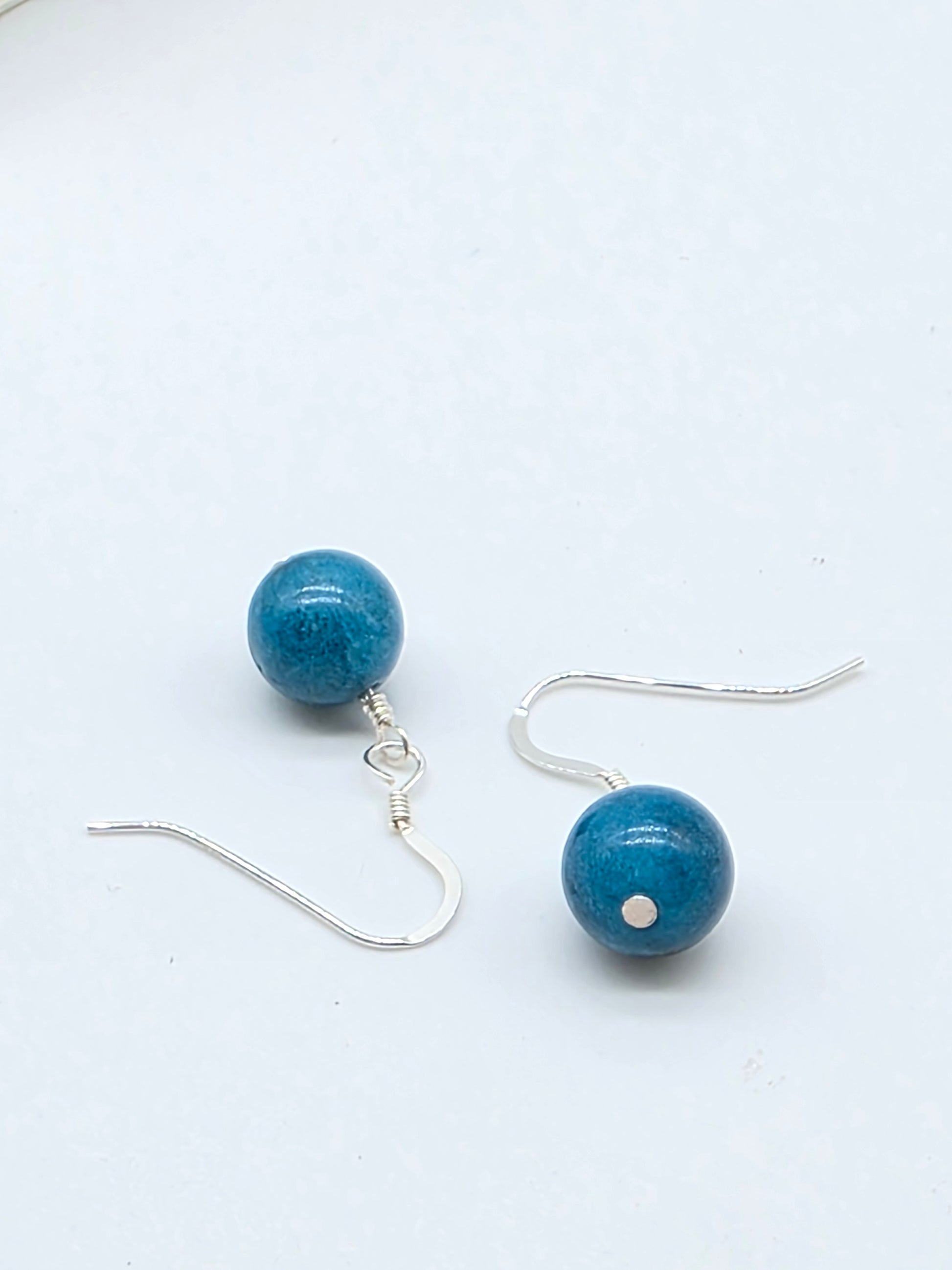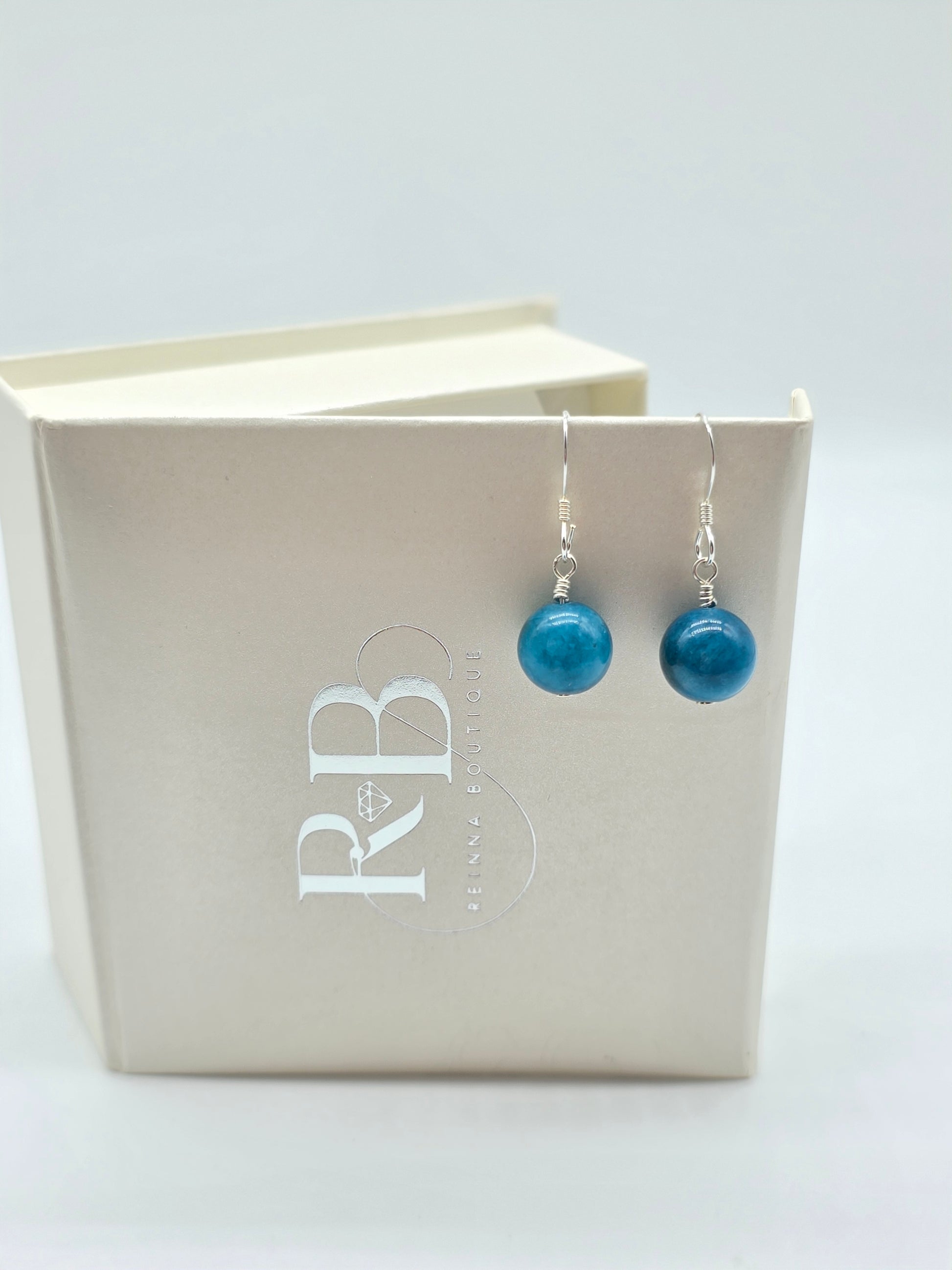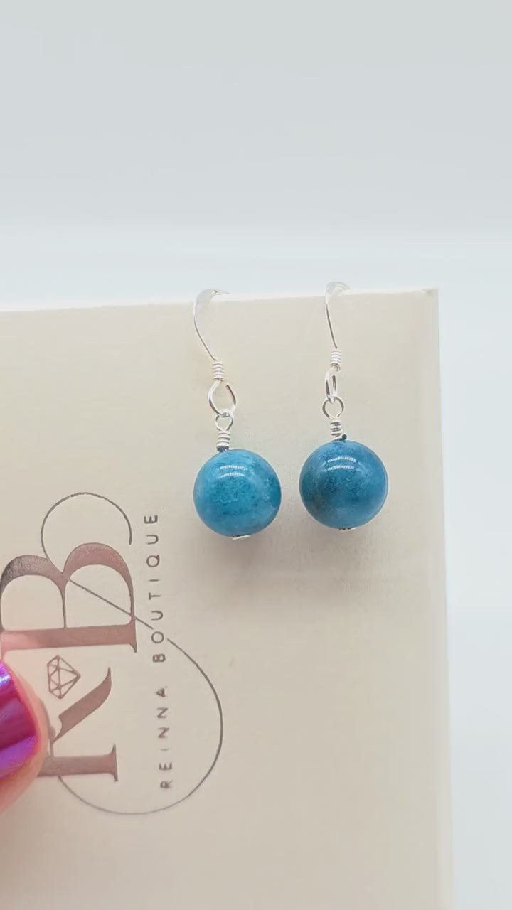 Dessa handgjorda örhängen har en stilren och elegant design med runda blå naturstenar (8 mm) som framhävs av detaljer i silver 925. Den intensiva blå färgen ger ett fräscht och iögonfallande intryck – perfekt för både vardag och fest.